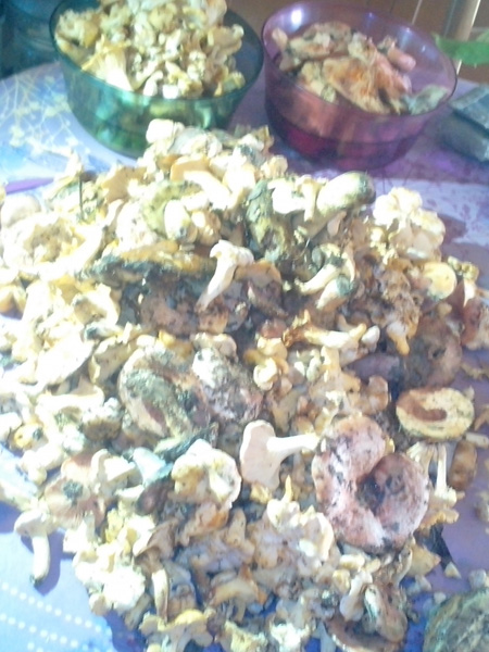 Amicalement25/10/2013 à 16:52 #569607Hier dans mes coins préférés ,j’ai récolté 3.600kg de girolles ,quelques cèpes ,des chanterelles et des safranées, des champignons de partout et surtout personne pour les ramasser hormis ma moitié et moi même, mon panier étant plein j’ai attaché mon tee shirt pour mettre le surplus,j’ai fini torse nu!!!Mais quel plaisir………..Moins pour les nettoyer et les préparer ,heureusement qu’il y a mon épouse!! :rolleyes: 😉