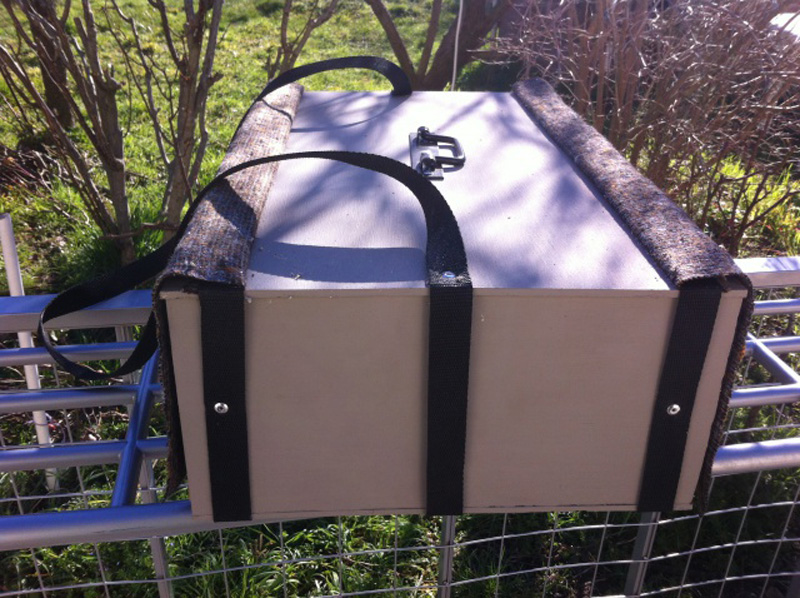 Les portes coulissent comme dans les anciennes cages en bois dans des trous que j’ai préalablement percés.Ensuite pour renforcer encore le tout sur le haut de la caisse , j’ai riveter un plaque d’alu de 2cm de large sur la longueur avant et arrière de ma caisse en maintenant dans l’ensemble du tissus epais pour que les oiseaux n’aient pas trop de jour pour ne pas etre effrayés.