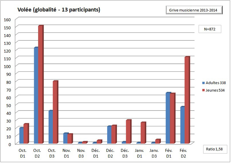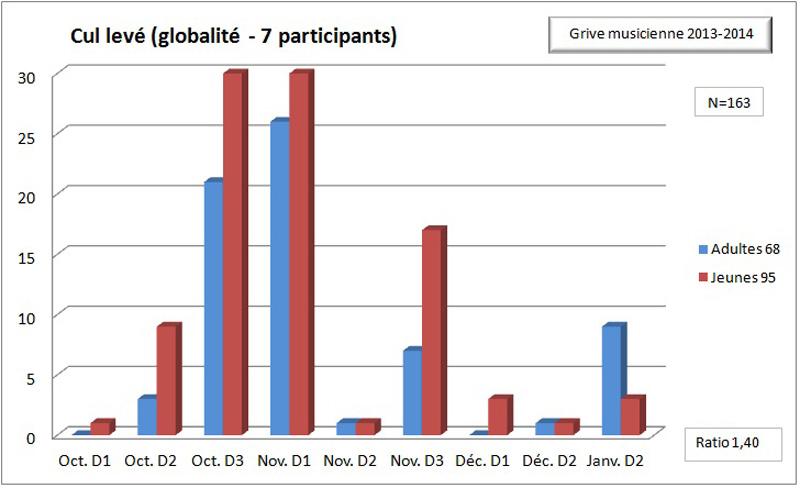 Interessant, une petite remarque, toutefois: il aurait été bon d’utiliser la même couleur dans les diagrammes pour les diverses classes d’age (bleu pour les adultes; rouge pour les jeunes; cf. les 2 derniers diagrammes).