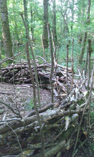 En fait, je rempli de bois pour que ce soit à bonne hauteur, après je mettrais des branches et branchages pour camoufler le tout sur le dessus.