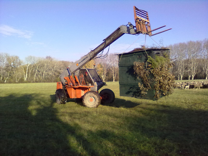 Toutes les jachères et les fossés vont être refaits (ce n’était pas prévu), alors, plutôt que de l’enlever momentanément, le démonter, le remonter…. , nous avons décidé de déplacer notre “VILLA” !!!! Mais le démontage et remontage, ça va bien un moment!!!